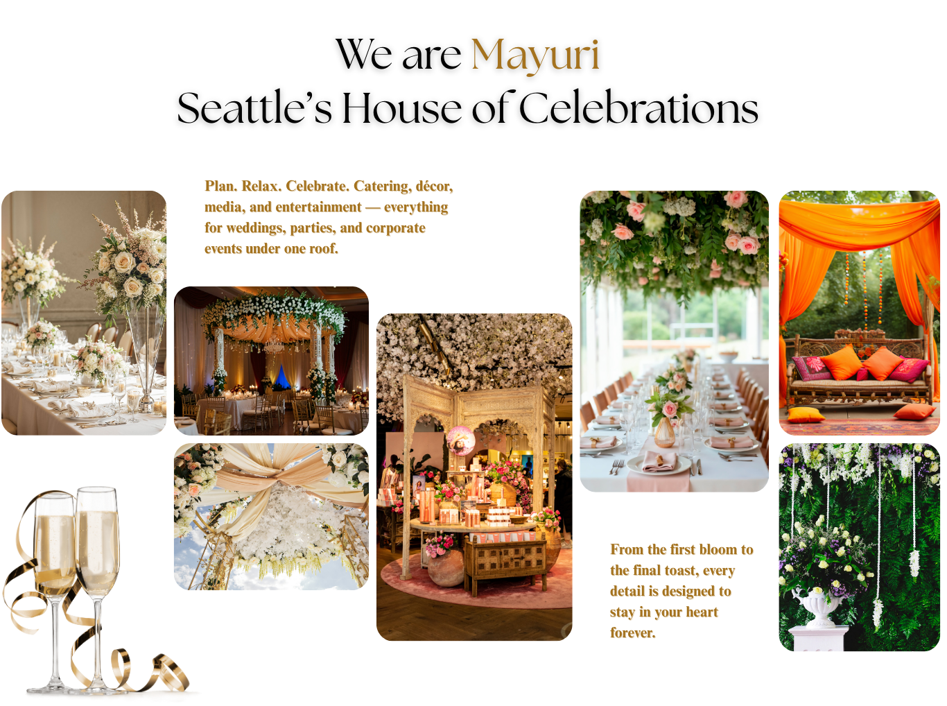 From floral mandaps to elegant installations, we craft spaces that reflect your story with style.